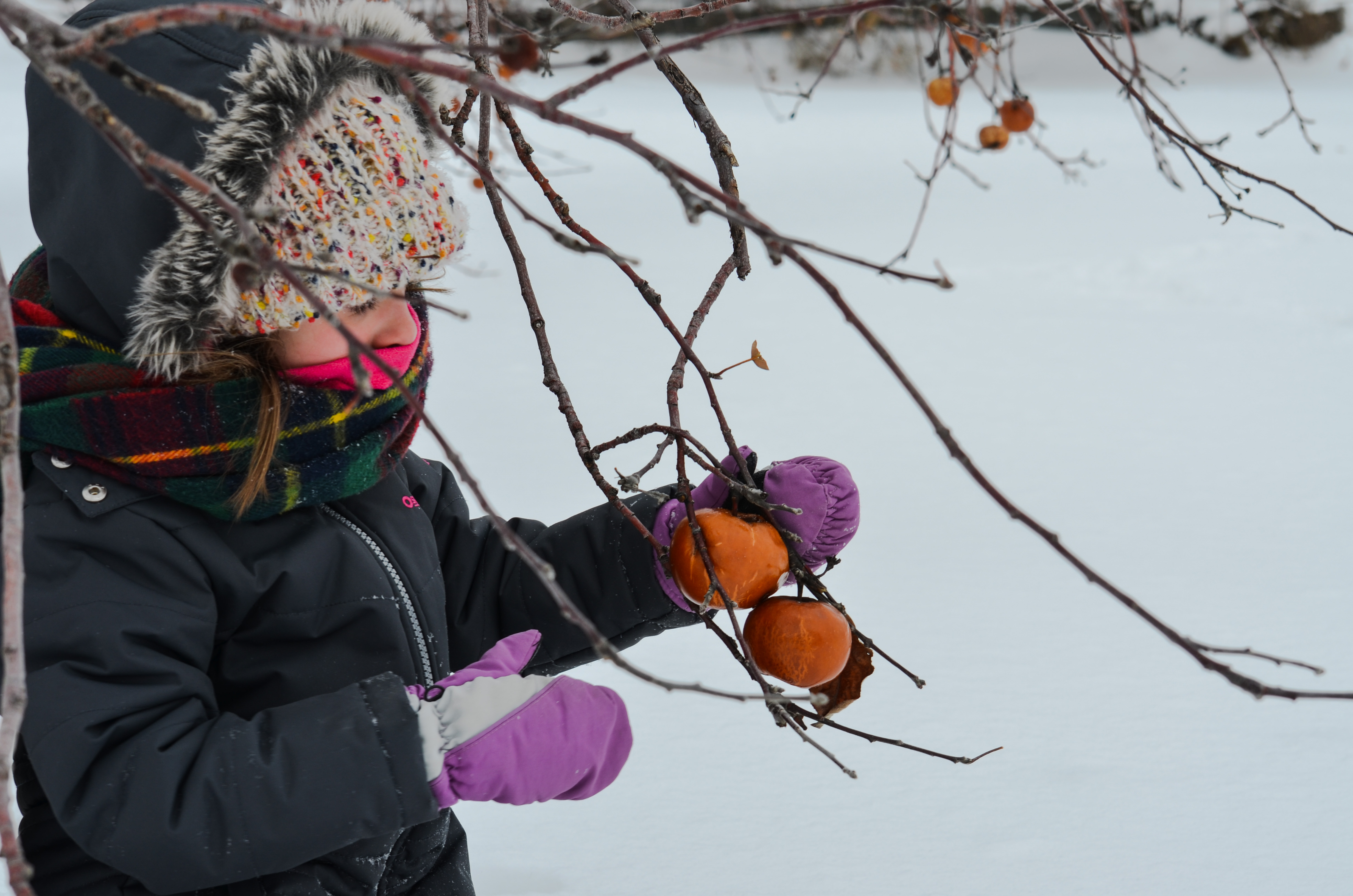 Cette année, nous avons bravé le froid glacial qui était favorable à la cueillette de pommes gelées mais tout de même un peu frette pour le bout du nez. Habillées bien chaudement avec de nombreuses pelures, nous avons passé un bon moment à cueillir les pommes et nous en avons même mangé une! Une première pour notre famille. Le goût me rappelait une bonne compote de pommes bien sucrée, mais gelée! C’était délicieux. Nous avons mis la totalité de notre récolte dans un bac prévu à cet effet. La cidrerie les utilisera pour la cuvée spéciale du cidre de glace. Lors du Festival du cidre de glace du Domaine Lafrance, vous avez également la possibilité de visiter,avec un guide, la distillerie et de goûter aux nombreux produits alcoolisés de la place.