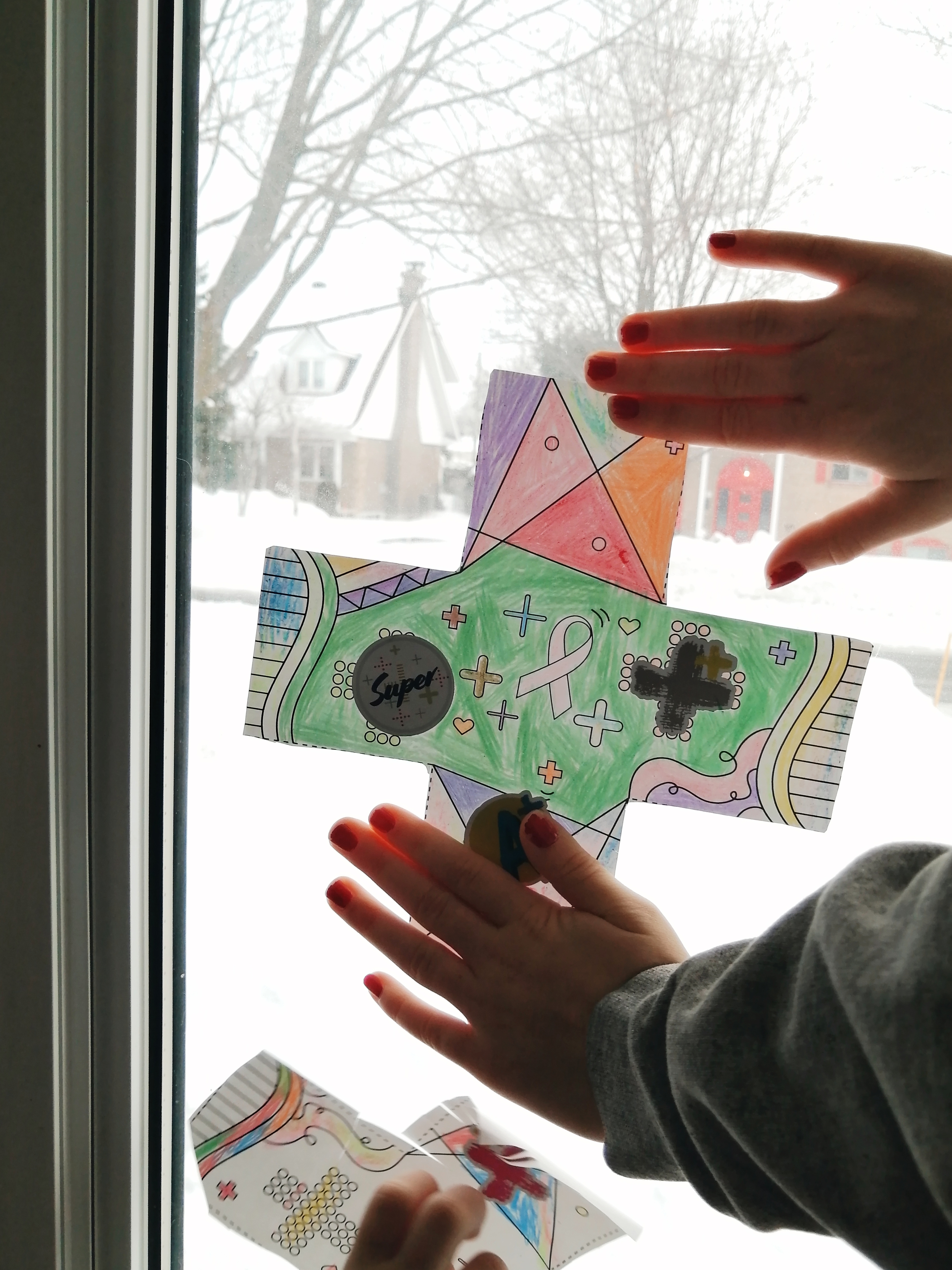 Quand nous sommes emménagés dans notre nouvelle maison en juin dernier, il y avait toujours de collés dans notre fenêtre du salon, deux arcs-en-ciel coloriés par les petits-enfants des anciens proprios. La dame nous les a laissés là, car malgré tout ce qu’elle avait vécu, elle gardait l’espoir et nous en partageait une parcelle. On se rappelle tous de ce mouvement mondial qui a pris d’assaut nos bay-windows. Au fil des mois et des mauvaises nouvelles, nos devantures colorées ont perdu de leur vivacité mais avec l’arrivée imminente du printemps et des Journées de la persévérance scolaire, voici une belle idée pour remettre de la vie dans la fenêtre de votre salon qui accompagnera les étudiants qui croiseront votre maison en prenant leur p’tite marche matinale vers l’école du quartier.